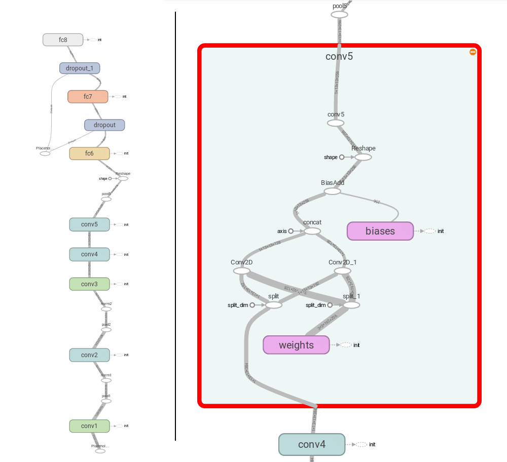 Now that we have the basic class structure, lets define some helper functions for creating the layers. The one for the convolutional layer might be the ‘heaviest’, because we have to implement the case of splitting and not splitting in one function. This function is an adapted version of the caffe-to-tensorflow repo